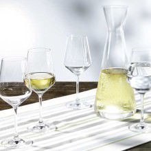 Uma forma e função única que deixa o vinho respirar profundamente. As taças são desenhadas para ampliar o prazer de beber um vinho de melhor qualidade.